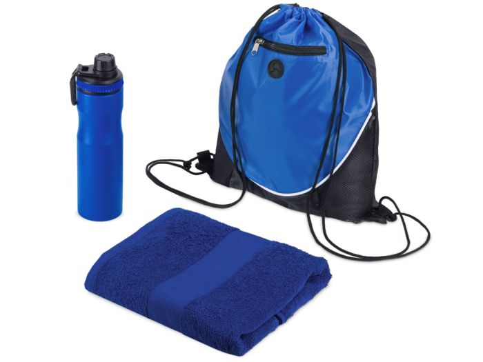Спортивный набор со стальной бутылкой и полотенцем «Advanced», синий