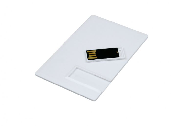 Флешка в ввиде карты с полностью выдвижным чипом 64Гб, цвет Белый, USB2.0