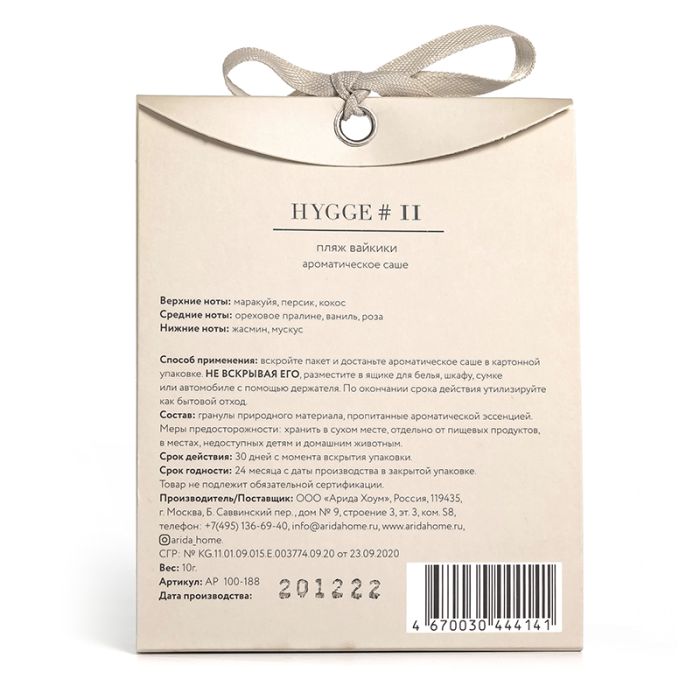 На нашем сайте вы можете заказать: Аромасаше HYGGE, бежевый, арт. 6010276.Макет cdr