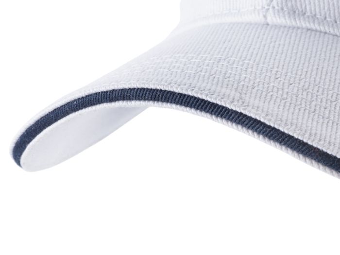 Контрастный кант по козырьку и заднему хлястику.