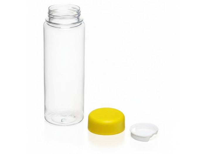 Бутылка для воды станет прекрасным подарком для энергичного человека, который занимается спортом, часто путешествует и всегда носит с собой напитки. Корпус выполнен из прочного материала ПЭТ с увеличенной толщиной. Также после истечения срока службы бутылки её можно будет сдать на переработку. Лаконичный внешний вид позволяет нанести на аксессуар логотип компании. Прозрачный корпус даёт возможность контролировать количество содержимого. Благодаря съёмному фильтру в воду можно добавлять лимон, мяту и фрукты. Силиконовое кольцо предотвращает протекание, а крышка надёжно закрывает бутылку. Рекомендуется использовать только с холодными и прохладными напитками. Избегать нагревания и попадания прямых солнечных лучей.