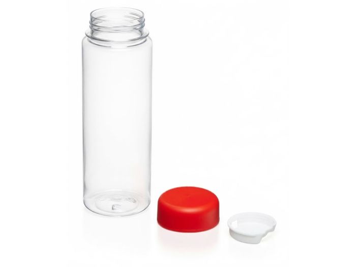 Бутылка для воды станет прекрасным подарком для энергичного человека, который занимается спортом, часто путешествует и всегда носит с собой напитки. Корпус выполнен из прочного материала ПЭТ с увеличенной толщиной. Также после истечения срока службы бутылки её можно будет сдать на переработку. Лаконичный внешний вид позволяет нанести на аксессуар логотип компании. Прозрачный корпус даёт возможность контролировать количество содержимого. Благодаря съёмному фильтру в воду можно добавлять лимон, мяту и фрукты. Силиконовое кольцо предотвращает протекание, а крышка надёжно закрывает бутылку. Рекомендуется использовать только с холодными и прохладными напитками. Избегать нагревания и попадания прямых солнечных лучей.