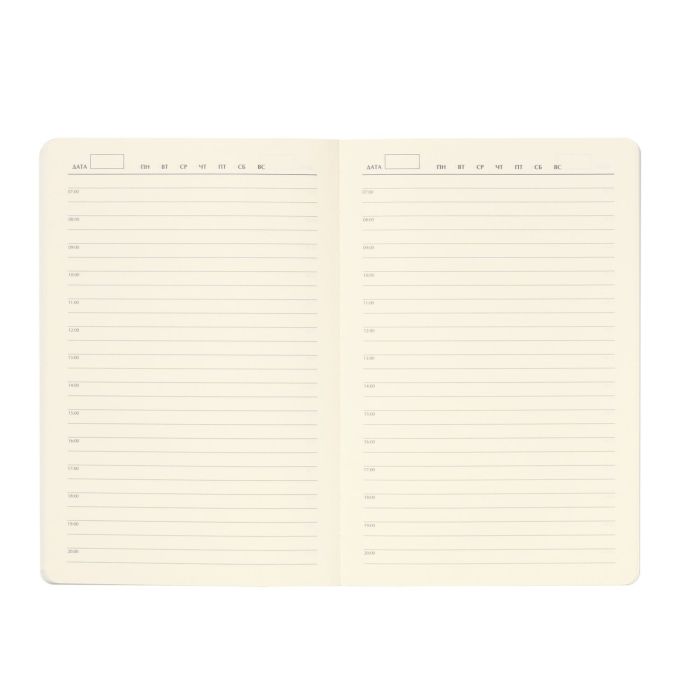 Недатированный ежедневник Latte в гибкой обложке из высококачественной искусственной кожи — воплощение изысканной простоты. Мягкая, приятная на ощупь матовая поверхность с эффектом Soft Touch и деликатным мелкозернистым рисунком порадует своего обладателя. Скруглённые углы обложки и страниц добавляют элегантности. Кремовые страницы из гладкого, шелковистого офсета идеально подходят для письма. Характеристики: - Блок: Кремовая бумага FSC, 70 г/м 128 листов - Перфорация последних 8 листов - Форзац: В цвет обложки, 165 г/м - Логотип Portobello 5 сертификатов - Обложка: Гибкая, искусственная кожа с мелкозернистым рисунком, покрытие Soft Touch - Цветной прокрас уреза - Логотип Portobello на задней стороне - Ляссе: Атласное (6 мм) - Одинарное в тон обложки - Срез блока: В тон обложки - Дополнительно: Цветные стикеры - Вкладыш Quality Control - Упаковка: пластиковая коробка-уголок с логотипом Portobello.