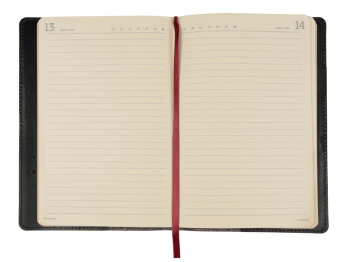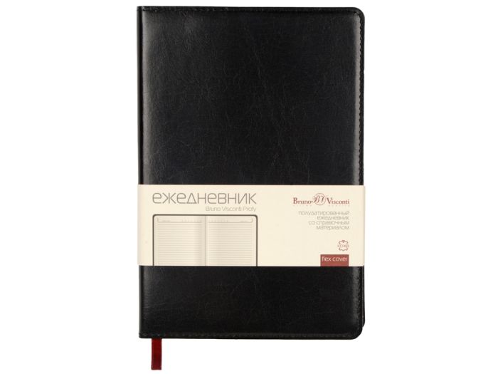 Незаменимый помощник современного профессионала – стильный и презентабельный ежедневник линии Profy. Обложка с прострочкой по периметру выполнена из натуральной рециклированной кожи и является съемной. Ежедневник формата А5 выпускается размером 143*216 мм. Полудатированный сменный блок включает 416 страниц бежевого цвета. Их закругленные уголки совпадают с формой обложки, обрез золотого цвета. Используется бумага высшего качества с плотностью 70 грамм. На 32 страницах помещена справочная информация. Последние 8 листов являются отрывными и снабжены перфорацией. Для хранения письменной принадлежности представлена специальная петля из кожи. Для быстрого перехода по страницам под обложкой находится бордовая закладка-ляссе. Поставляется в индивидуальной упаковке.