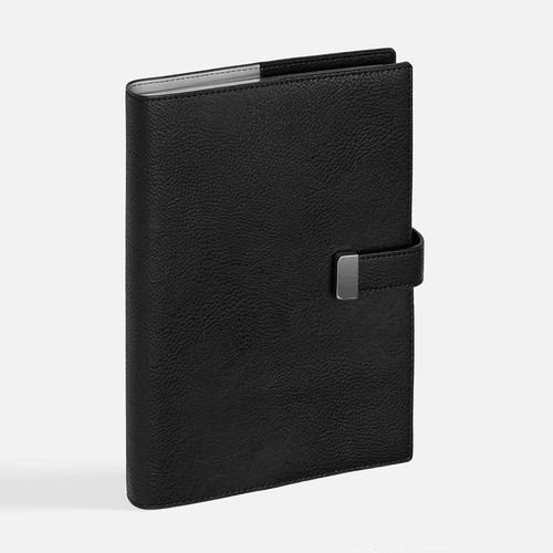 Ежедневник в мягком переплёте со съёмная обложкой, дополнен застёжкой-хлястиком с металлическим шильдом на кнопке, двойным ляссе и капталом.
