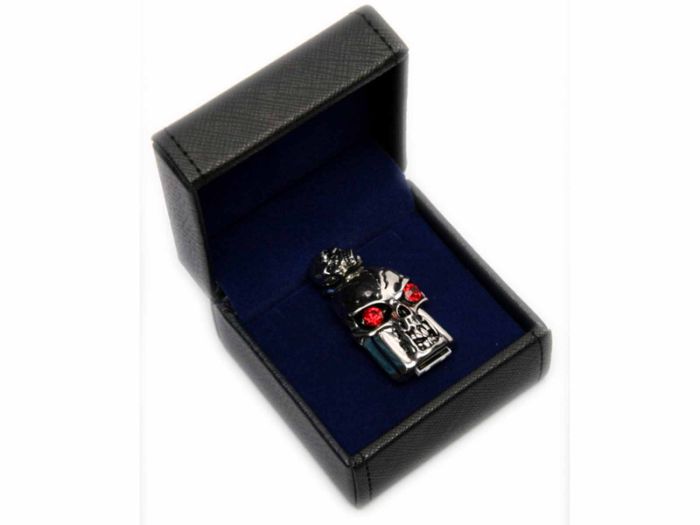 Флеш-накопитель в виде "Черепа" с кристаллами , Серебряный. Оригинальная и прикольная подарочная usb флешка «Череп», для ценителей пугающих гаджетов. Изделие в корпусе из хромированного металла украшено красными глазами-кристаллами, прочный сплав не тускнеет и устойчив к появлению царапин. В верхней части черепа расположена петля для подвешивания на цепочку. Выдвижной USB-коннектор удобно расположен внутри изделия и выдвигается из «подбородка» — несмотря на необычную форму флешки ее можно подсоединить даже к неудобно расположенным портам. Накопитель можно использовать как стильный мужской подарок.