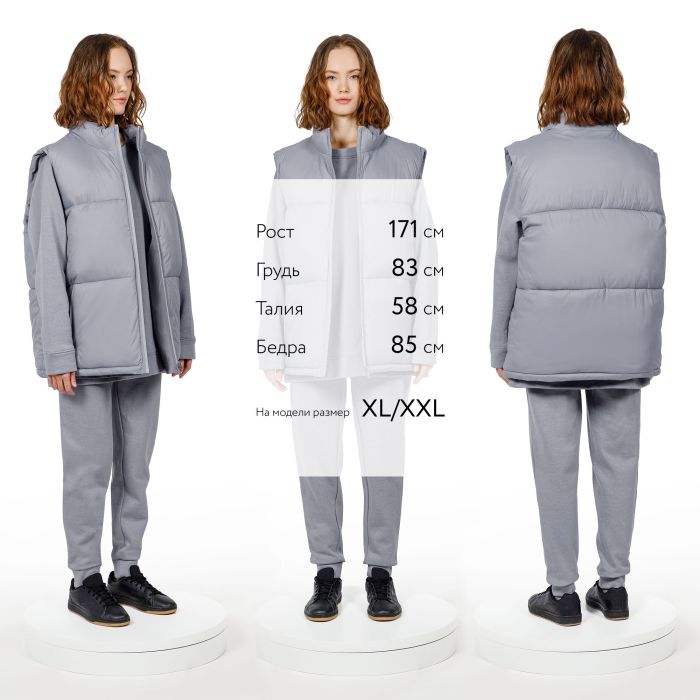 Двусторонний утепленный жилет V2 — это сразу два стильных образа в одном изделии. С одной стороны он стеганый и глянцевый, а с другой — матовый, лаконичный и уже без прострочки. Объемная и легкая модель оверсайз позволяет создать непринужденный и комфортный образ и в городе, и в путешествии.