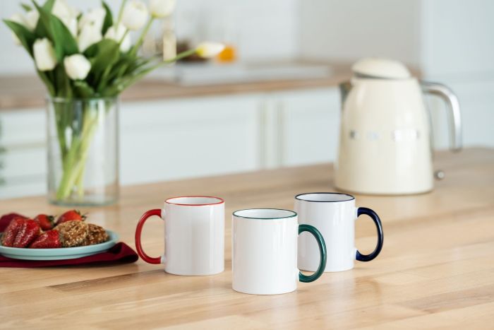 Кружка Rimo для сублимационной печати с цветным ободком и ручкой.