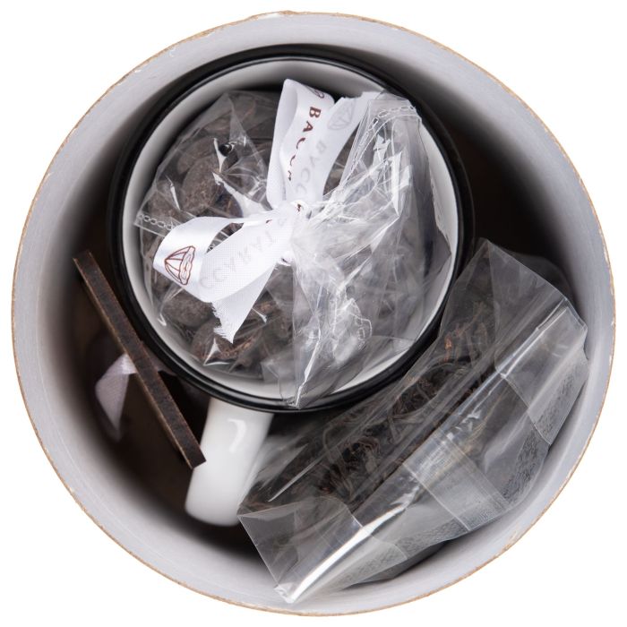 Погрузитесь в мир уюта и наслаждений с новогодним набором DreamDrop! Это идеальное сочетание сладостей и тепла создаст атмосферу праздника и позволит вам насладиться каждым моментом волшебных вечеров. С набором DreamDrop каждый момент станет особенным, а сладкие воспоминания останутся с вами на долгое время. Подарите себе и своим любимым магию новогодних вечеров! В комплекте: - Шоколадные дропсы Melt It - Тубус, крафт - Кружка Dacha, средняя, белая - Чай черный «Ассам» - Деревянная подвеска Christmate, конфета