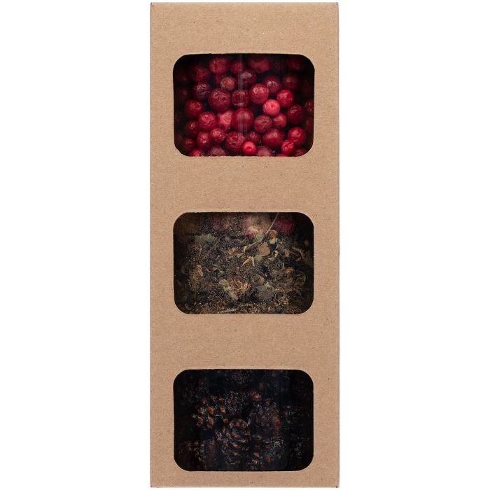 Погрузитесь в мир природы с набором Flow Lab. Этот уникальный микс сочетает в себе ароматный чай-разнотравье, наполненный яркими нотами лесной клубники, который подарит свежесть и сладость. Сублимированная брусника добавляет пикантную кислинку, а вяленые шишки придают набору неповторимый лесной характер. В набор входят: - чай «Разнотравье» с лесной клубникой, вес 16 г - сублимированная брусника, вес 12 г - вяленые шишки, вес 87 г Набор упакован в коробку с окном. Срок годности: 24 месяца.