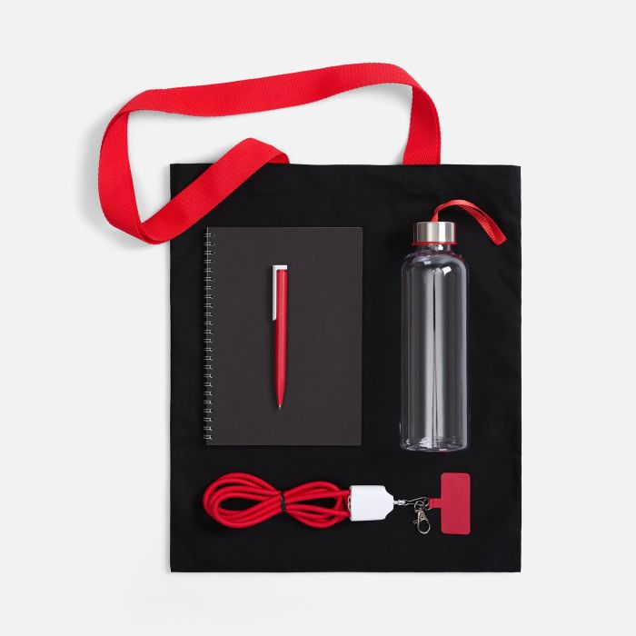 С продуманным приветственным набором Flowork получится быть в потоке с первого рабочего дня: своевременно выполнять все задачи и пополнять как свой водный баланс, так и уровень заряда основных электронных устройств. А значит — быстро адаптироваться на новом месте и с лёгкостью войти в общий ритм. Элементы с яркими цветовыми акцентами добавляют стиля этому велком-паку, собранному в трендовый прочный шопер. Ёмкость бутылки 500 мл. В комплекте: - Холщовая сумка BrighTone, чёрная с красными ручками - Кабель-ланьярд energyFlex Pro, красный - Бутылка Gulp, красная - Блокнот Salvador в клетку, чёрный ver.2 - Ручка шариковая Dotto, красная
