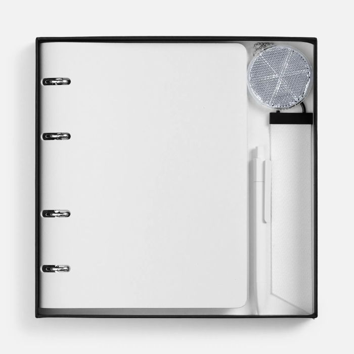 В комплекте: - Ежедневник Ringo, недатированный, белый - Коробка под набор, чёрный - Ручка шариковая Prodir DS4 PMM-P, белая - Ремувка Domina, L, белая - Пешеходный светоотражатель с цепочкой «Круг», белый
