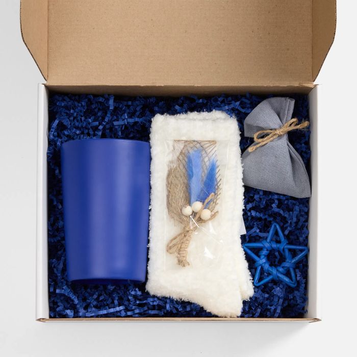 Набор Sockshire — готовое решение для тёплого подарка. В изящной коробке — лаконичный дуэт, созданный исключительно для комфорта и спокойных мгновений: софт-тач кружка для любимых напитков и мягкие пушистые носки для полного расслабления. - Дарите уют без лишних слов. - Ёмкость кружки 420 мл. В комплекте: - Набор для упаковки подарка Adorno, белый - Кружка Best Noon с покрытием софт-тач, синий - Носки Flaum, белые