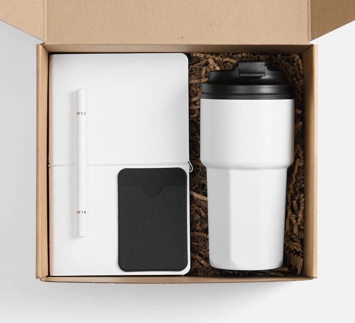 В комплекте: - Ежедневник Waltz, недатированный - Термостакан Presa - Чехол для карты на телефон Devon - Коробка Grande - Бумажный наполнитель Chip - Ручка шариковая и вечный карандаш Diptych