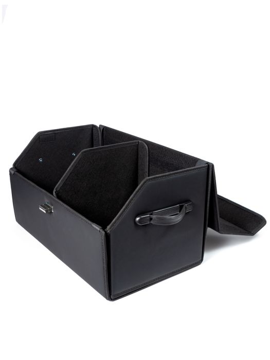 Органайзер - сундук для автомобиля "Fernando" — простой и функциональный органайзер для поддержания порядка в багажнике автомобиля, гараже или домашней кладовой. Черный корпус из износостойкого полиуретана с текстурой под нубук сохраняет презентабельный вид даже при активном использовании.