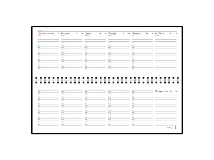 Недатированный планинг на гребне, цвет черный, твердый переплет, 128 страниц. Плотность бумаги 70 грамм высшего сорта. Печать в 2 краски.