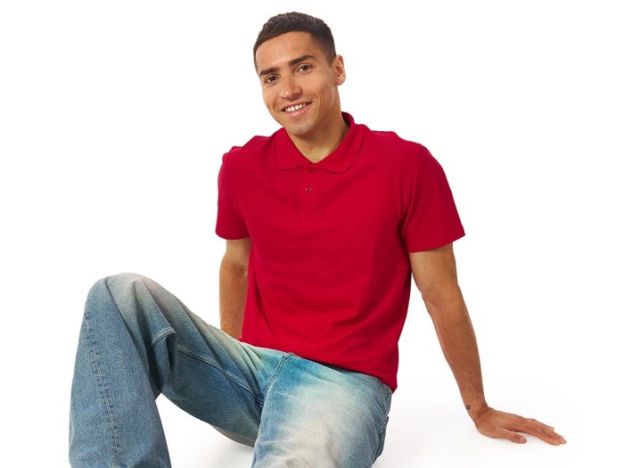 Рубашка-поло First. Воротник 1х1. Обшивка внутри воротника. Мужская и детская модели с 2 пуговицами, женская - с 4 пуговицами. Пуговицы с гравировкой в тон. Пике, 100% хлопок. 160 г/м2.