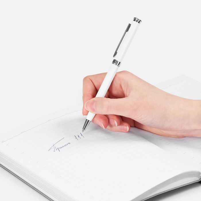 Тонкая классическая ручка — подарок вне времени и моды. Изящное решение для тех, кто ценит совершенство в деталях. - Механизм ручки: поворотный. - Корпус ручки разбирается, стержень легко заменить. - Стержень с синими чернилами. - Длина линии письма: 800 м