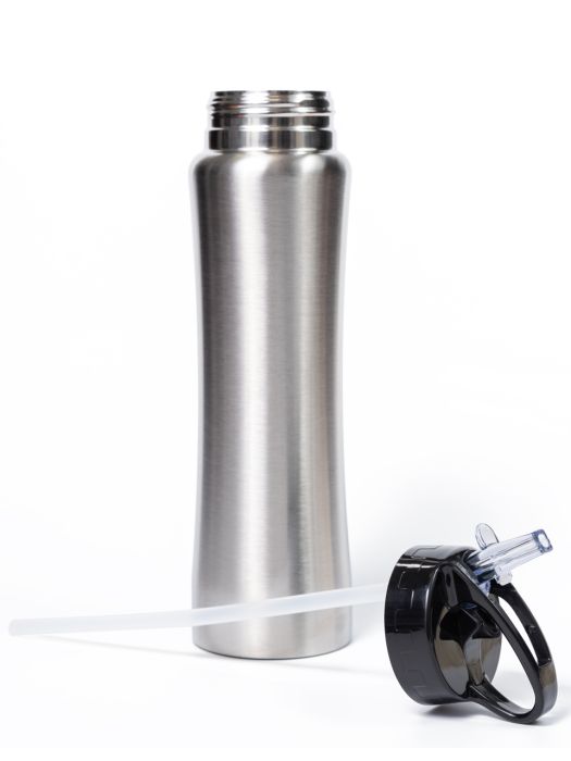 Герметичная крышка со встроенным складным поильником обеспечивает удобное питье во время движения и полную защиту от протеканий. Бутылку удобно носить в руке или закрепить на рюкзаке за ручку на крышке.