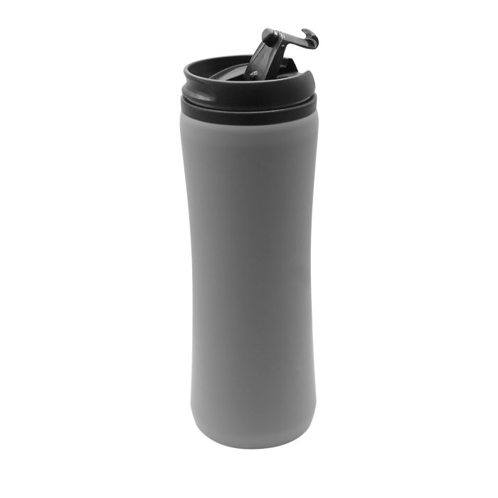Термокружка изготовлена из нержавеющей стали с покрытием софт тач. Внутренняя колба сделана из пластика. Вакуумная конструкция. Объем термокружки – 500 мл.