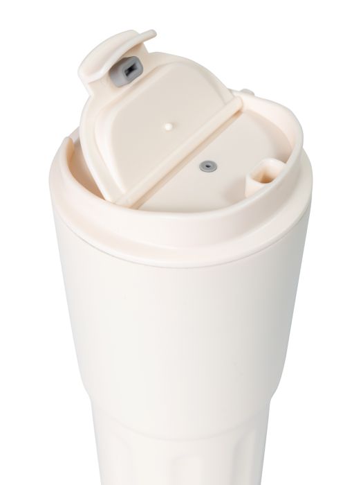 Матовое покрытие выглядит современно, а сама кружка приятно лежит в руках. Крышка кружки дополнена съемным держателем из полиэстера.
