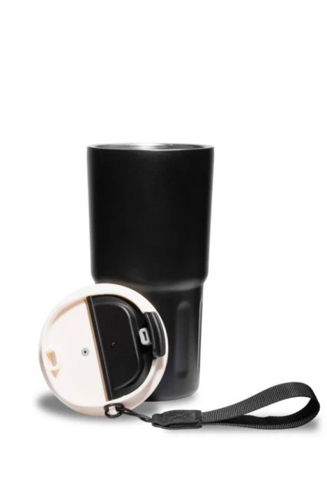 Благодаря двойным стенкам из нержавеющей стали напитки остаются горячими несколько часов. Герметичная крышка надежно защищает от протеканий, позволяя брать кружку в дорогу без опасений за содержание своей сумки или рюкзака. Матовое покрытие выглядят современно, а сама кружка приятно лежит в руках. Крышка кружки дополнена съемным держателем из полиэстера.