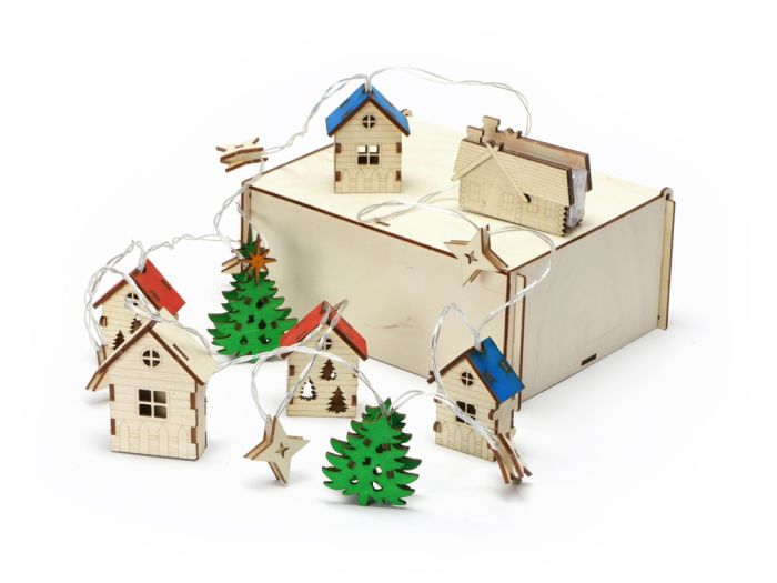 Елочная гирлянда с лампочками Зимняя сказка деревянная + деревянная коробка с наполнителем-стружкой Ларь