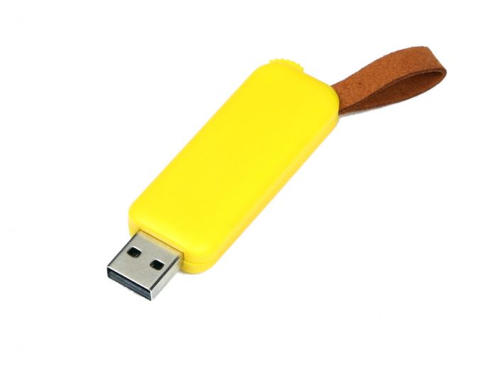 Флеш-накопитель промо прямоугольной формы, выдвижной механизм. 64 Гб. Цвет жёлтый, USB2.0