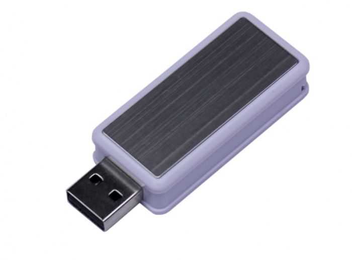 Флешка промо прямоугольной формы, выдвижной механизм, 64 Гб.цвет белыйЧёрный, USB2.0